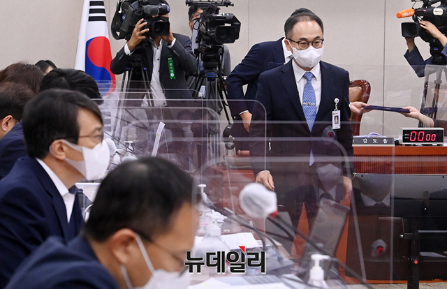 이원석 검찰총장 후보자가 5일 오전 국회 법제사법위원회에서 열린 인사청문회에 출석해 마스크를 만지고 있다. (공동취재사진)
