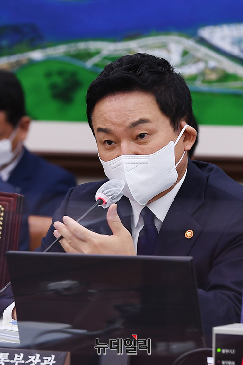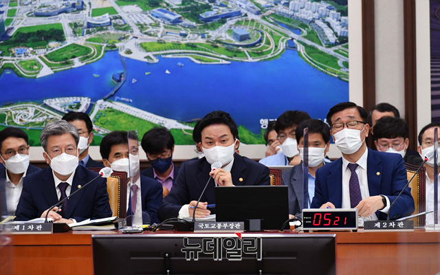 원희룡 국토교통부 장관이 5일 국회에서 열린 국토교통위원회 전체회의에서 의원 질의에 답하고 있다. (공동취재사진)