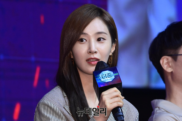방송인 권유리가 6일 오전 서울 중구 웨스틴 조선호텔에서 열린 디즈니+ 오리지널 새 예능 '더 존:버텨야 산다(연출 조효진, 김동진)' 제작발표회에서 취재진의 질문에 답하고 있다.