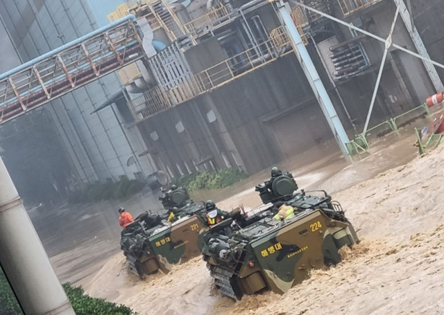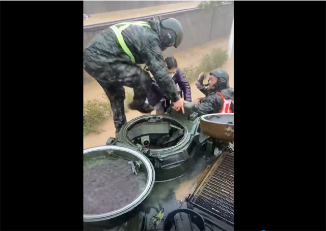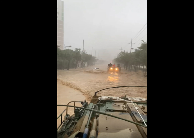 해병대사령부가 제공한 영상에는 침수된 도로를 질주하는 상륙장갑차의 모습과 성인 허리춤까지 물이 차오른 도로에서 소방 구조요원과 해병대원이 구조한 시민을 상륙장갑차에 태우는 모습이 담겼다.