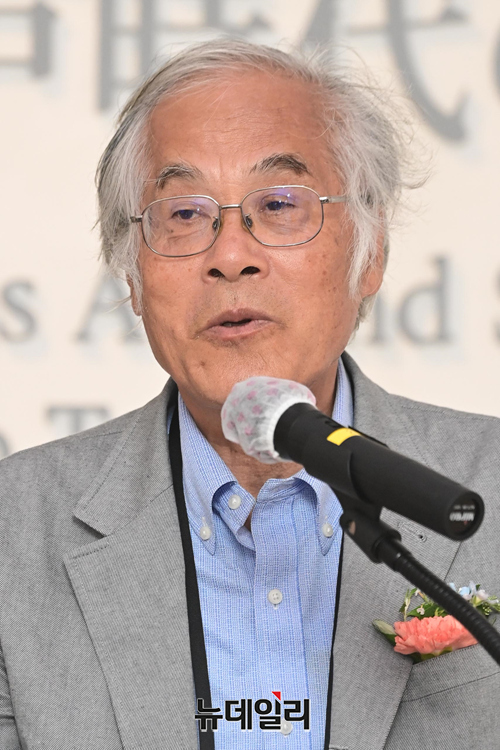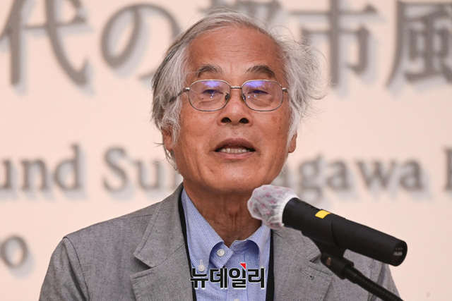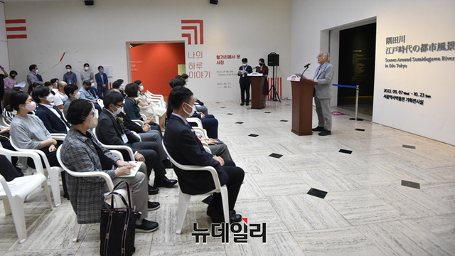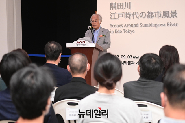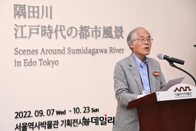 '후지모리 테루노부' 에도도쿄박물관장이 6일 오후 서울 종로구 서울역사박물관 기획전시실에서 열린 '에도시대 스미다 강의 도시풍경' 국제교류전 개막식에서 인사말을 하고 있다.