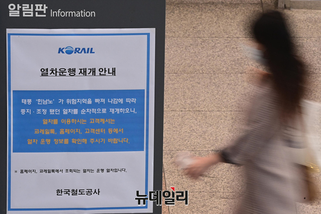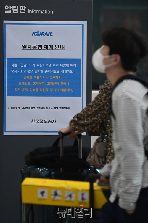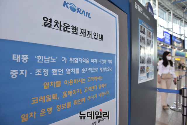 한국철도공사가 제11호 태풍 힌남노 여파로 조정 및 중단했던 열차 운행을 오전 9시부터 재개했다. 철도공사에 따르면 운행 재개에 앞서 노선에 대한 시설물 안전 점검을 마무리하고, 시험열차를 투입했다. 일부 역사와 광장의 침수 피해는 긴급 보수작업을 완료했다.