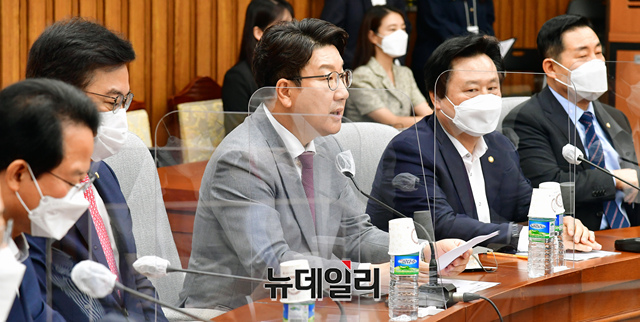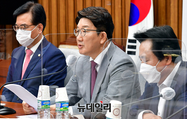 권성동 국민의힘 원내대표가 7일 오전 국회에서 열린 원내대책회의에서 모두발언을 하고 있다.