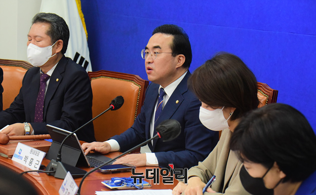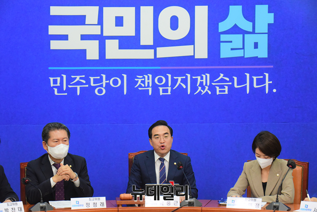 박홍근 더불어민주당 원내대표가 7일 국회에서 열린 최고위원 회의에서 모두발언을 하고 있다.