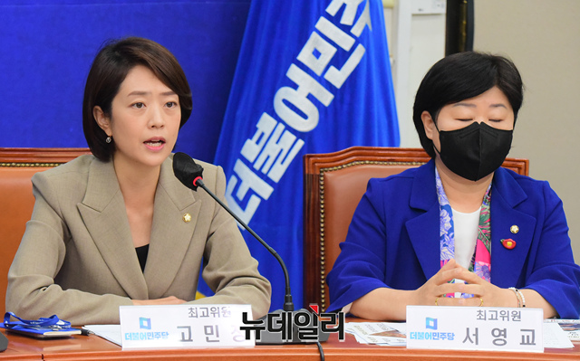 고민정 더불어민주당 최고위원이 7일 국회에서 열린 최고위원회의에서 모두발언을 하고 있다.