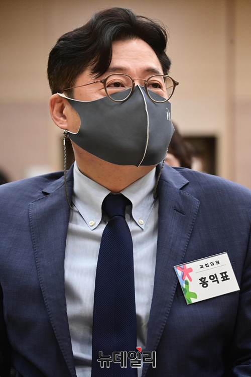 홍익표 더불어민주당 의원이 7일 오전 서울 서초구청에서 열린 스마트복지 체험 행사에 참석해 자리하고 있다.