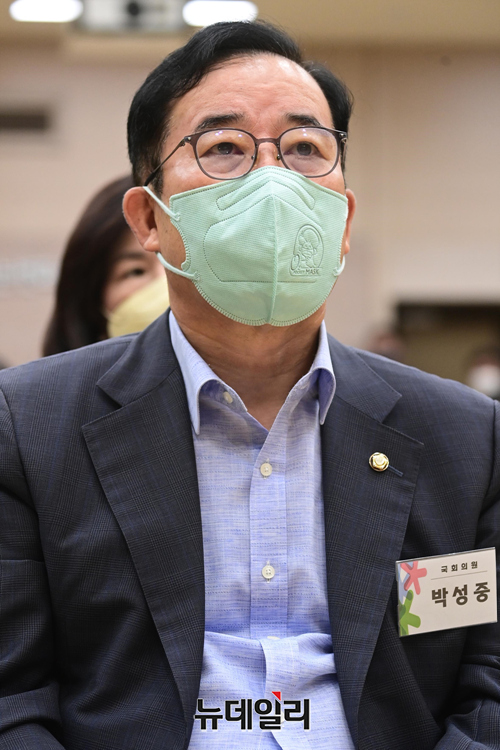 박성중 국민의힘 의원이 7일 오전 서울 서초구청에서 열린 스마트복지 체험 행사에 참석해 자리하고 있다.