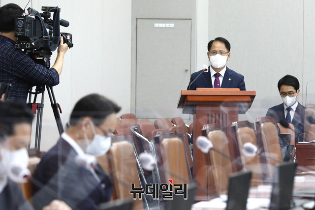 박찬진 중앙선거관리위원회 사무총장이 7일 국회에서 열린 정치개혁특별위원회 전체회의에서 인사말 및 업무보고를 하고 있다. (공동취재사진)