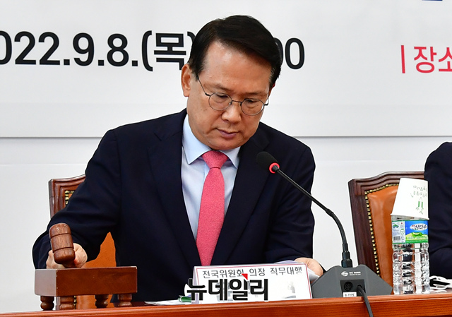 윤두현 국민의힘 전국위원회 의장 직무대행이 8일 국회에서 열린 제5차 전국위원회를 주재하고 있다.