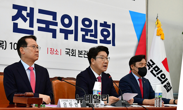 권성동 국민의힘 원내대표가 8일 국회에서 열린 제5차 전국위원회서 모두발언을 하고 있다.
