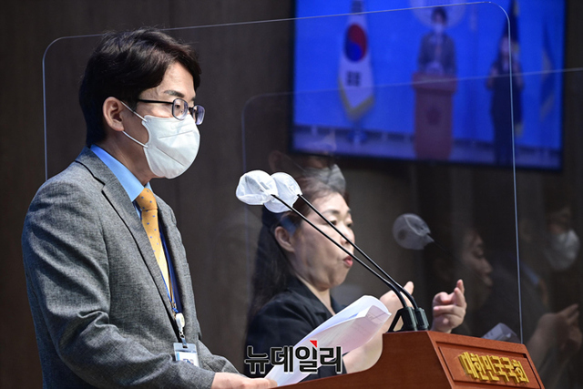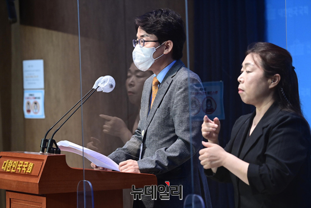 정환철 국회사무처 공보기획관이 13일 오전 국회 소통관에서 국회 정례보고를 하고 있다.