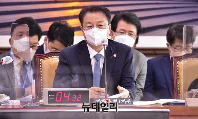 방기선 기획재정부 제1차관이 14일 국회에서 열린 민생안정특별위원회 4차 회의에서 대중교통비 환급 및 소득공제 방안에 관한 업무보고를 하고 있다. (공동취재사진)