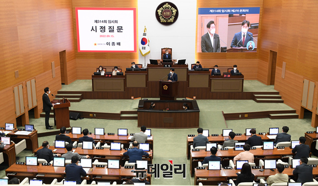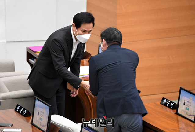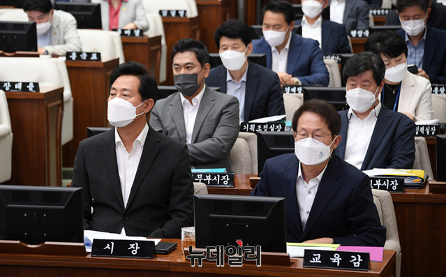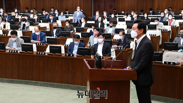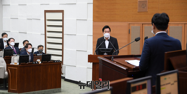 오세훈 서울시장이 15일 오전 서울 중구 서울시의회에서 열린 제314회 임시회 제2차 본회의 참석해 의원들의 질의에 답하고 있다. (사진=서울시)