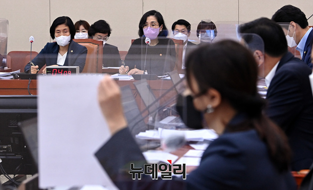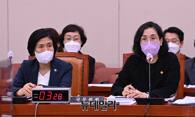 김현숙 여성가족부 장관이 16일 오전 국회에서 열린 여성가족위 전체회의에서 신당역 역무원 피살사건 관련 질의에 답변하고 있다. (공동취재사진)