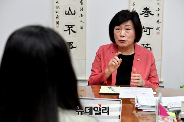 정경희 국민의힘 의원이 15일 오전 국회 의원회관 정 의원의 사무실에서 뉴데일리와 좌편향 역사교육과정 논란 관련 인터뷰를 갖고 있다.