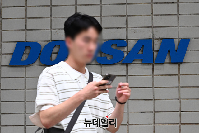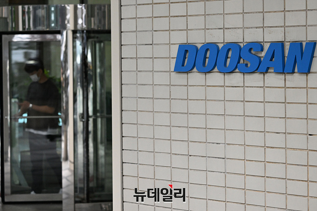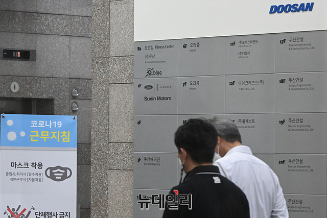 수원지검이 이재명 더불어민주당 대표의 '성남FC 후원금 의혹'과 관련해 성남 두산건설과 성남FC 사무실을 포함해 20곳 대상으로 압수수색에 나선 16일 오후 서울 강남구 두산건설 본사에서 직원들이 이동하고 있다.