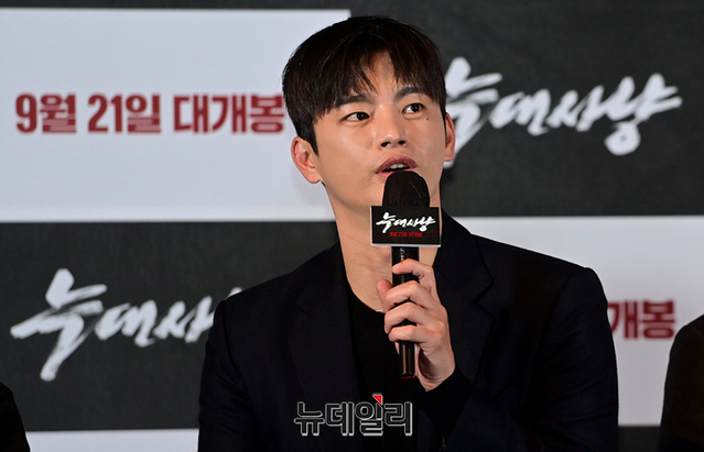 배우 서인국이 19일 오후 서울 CGV용산에서 열린 영화 '늑대사냥(감독 김홍선)' 언론시사회에서 인사말을 하고 있다.