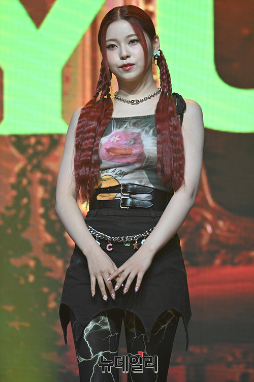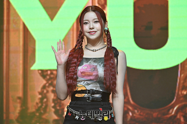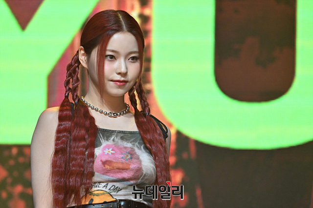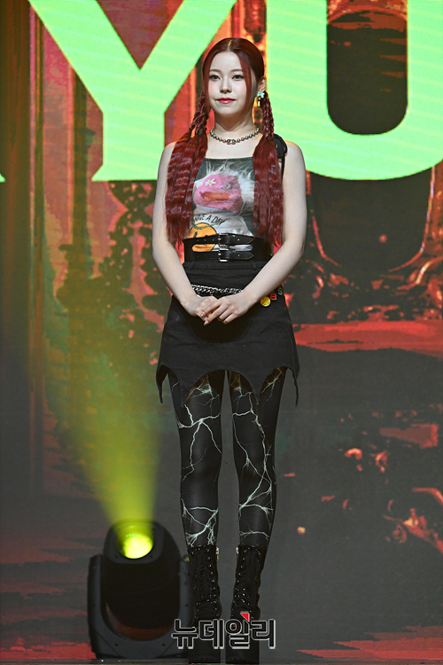 걸그룹 엔믹스 규진이 19일 오후 서울 광진구 예스24라이브홀에서 열린 두 번째 싱글앨범 '엔트워프(ENTWURF)' 발매 기념 쇼케이스에서 포즈를 취하고 있다.