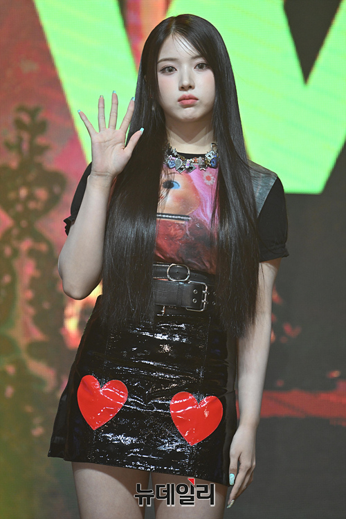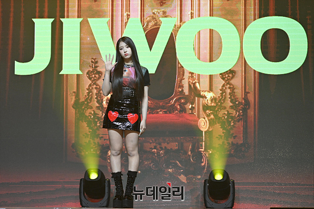 걸그룹 엔믹스 지우가 19일 오후 서울 광진구 예스24라이브홀에서 열린 두 번째 싱글앨범 '엔트워프(ENTWURF)' 발매 기념 쇼케이스에서 포즈를 취하고 있다.