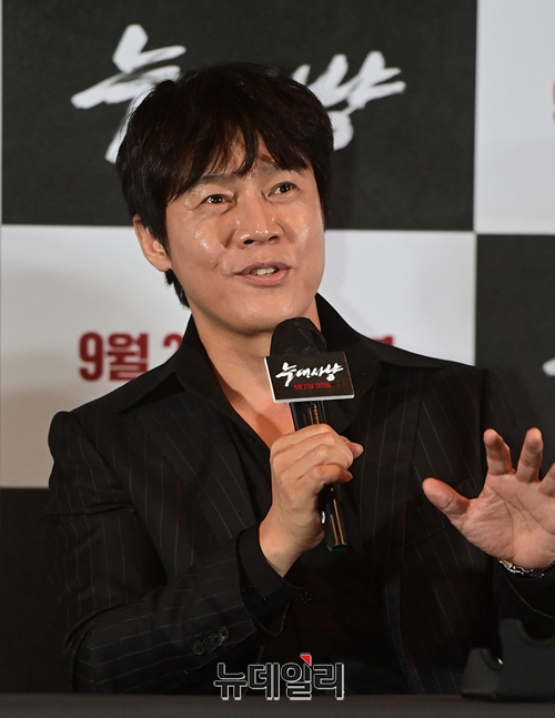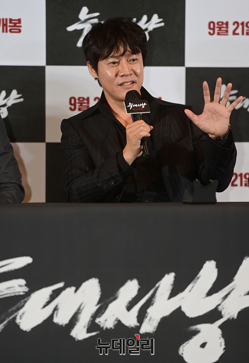 배우 박호산이 19일 오후 서울 CGV용산에서 열린 영화 '늑대사냥(감독 김홍선)' 언론시사회에서 인사말을 하고 있다.