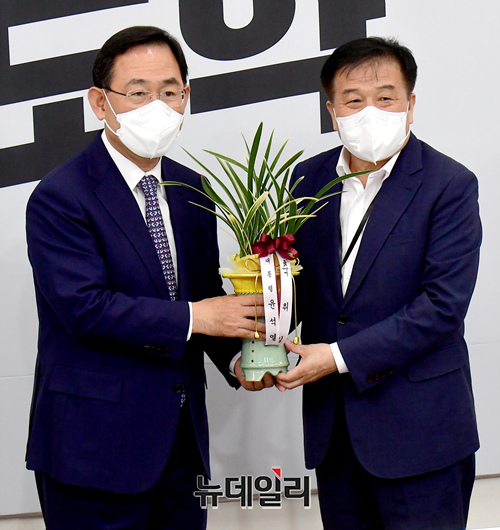 [포토] 축하난 받은 주호영 국민의힘 원내대표