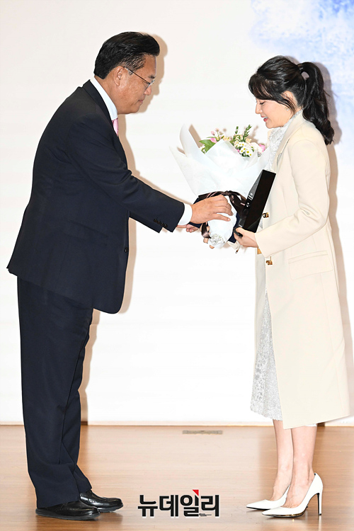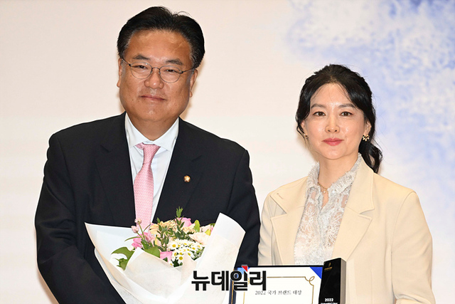 정진석 국민의힘 비상대책위원장이 20일 오전 서울 국회의원회관에서 열린 2022 국가브랜드대상 시상식에서 배우 이영애에게 국가브랜드 한류 공로상을 시상하고 있다.'국가브랜드 대상'은 매년 문화, 예술, 스포츠 등 각 분야에서 대한민국을 빛낸 사람에게 공로를 인정해 시상하는 행사다.올해는 국가브랜드 대상 수상자는 배우 이정재, 최민정 쇼트트랙 선수, 임윤찬 피아니스트이며 국가브랜드 한류 공로상은 배우 이영애, 특별상엔 전인건 간송미술관장이 선정됐다.배우 이정재는 코로나 확진으로 행사에 참석하지 못했다.