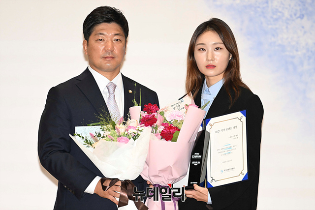 이용 국민의힘 의원이 20일 오전 서울 국회의원회관에서 열린 2022 국가브랜드대상 시상식에서 최민정 쇼트트랙 선수에게 국가브랜드 대상을 시상하고 있다.'국가브랜드 대상'은 매년 문화, 예술, 스포츠 등 각 분야에서 대한민국을 빛낸 사람에게 공로를 인정해 시상하는 행사다.올해는 국가브랜드 대상 수상자는 배우 이정재, 최민정 쇼트트랙 선수, 임윤찬 피아니스트이며 국가브랜드 한류 공로상은 배우 이영애, 특별상엔 전인건 간송미술관장이 선정됐다.배우 이정재는 코로나 확진으로 행사에 참석하지 못했다.