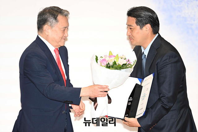 조동성 산업정책연구원 이사장이 20일 오전 서울 국회의원회관에서 열린 2022 국가브랜드대상 시상식에서 전인건 간송미술관장에게 국가브랜드 한류 특별상을 시상하고 있다.'국가브랜드 대상'은 매년 문화, 예술, 스포츠 등 각 분야에서 대한민국을 빛낸 사람에게 공로를 인정해 시상하는 행사다.올해는 국가브랜드 대상 수상자는 배우 이정재, 최민정 쇼트트랙 선수, 임윤찬 피아니스트이며 국가브랜드 한류 공로상은 배우 이영애, 특별상엔 전인건 간송미술관장이 선정됐다.배우 이정재는 코로나 확진으로 행사에 참석하지 못했다.