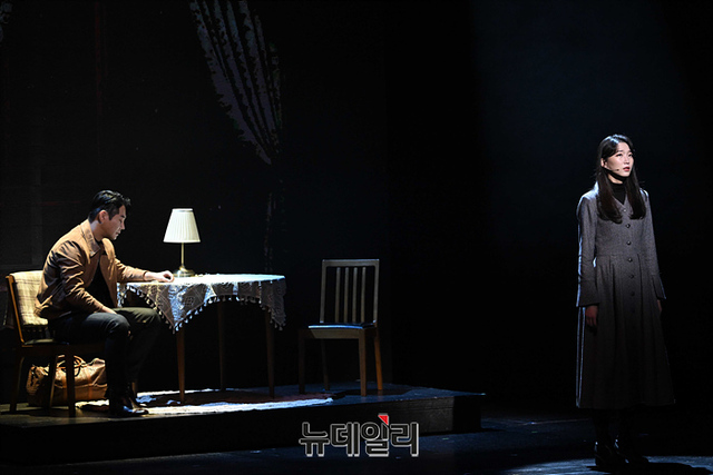 구승준 역을 맡은 배우 테이, 서단 역을 맡은 배우 김이후가 20일 오후 서울 강남구 코엑스 신한카드 아티움에서 열린 뮤지컬 '사랑의 불시착(연출 박지혜)' 프레스콜에서 '노을' 하이라이트 장면을 시연하고 있다.뮤지컬 '사랑의 불시착'은 2020년 방영된 현빈·손예진 주연의 tvN 동명드라마를 원작뮤지컬 '사랑의 불시착'은 2020년 방영된 현빈·손예진 주연의 tvN 동명드라마를 원작으로 제작했다.어느 날 돌풍과 함께 패러글라이딩 사고로 북한에 불시착한 재벌 상속녀 윤세리와 그녀를 숨기고 지키다 사랑하게 된 특급 장교 리정혁의 사랑 이야기를 그린다. 11월 13일까지 코엑스 신한카드 아티움에서 공연.