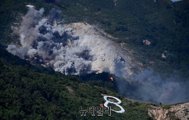 우리 육군이 20일 오후 경기 포천시 승진과학화훈련장에서 대규모 기동화력 훈련 현장을 공개한 가운데 자주포탄이 적진을 향해 날아가고 있다.육군이 기동화력 시범을 재개한 것은 2018년 이후 4년 만이다. 유·무인 복합전투체계 아미타이거를 적용한 대규모 기동화력 시범을 선보인 것은 이번이 처음이다.박정환 육군참모총장 주관으로 열린 행사에는 해외 25개국 장성급 인사를 비롯한 국방 관료 및 방위산업 관계자, 주한대사, 국방무관, 국회 관계자, 일반 국민 등 1,800여 명이 참석했다.이번 훈련 공개는 21일부터 일산 킨텍스에서 열리는 '대한민국 방위산업전시회(DX KOREA 2022)' 사전 행사의 일환으로 진행됐다. 방위산업전시회는 21일부터 25일까지 일산 킨텍스 실내외 전시장에서 진행된다. (경기 포천=정상윤 기자)