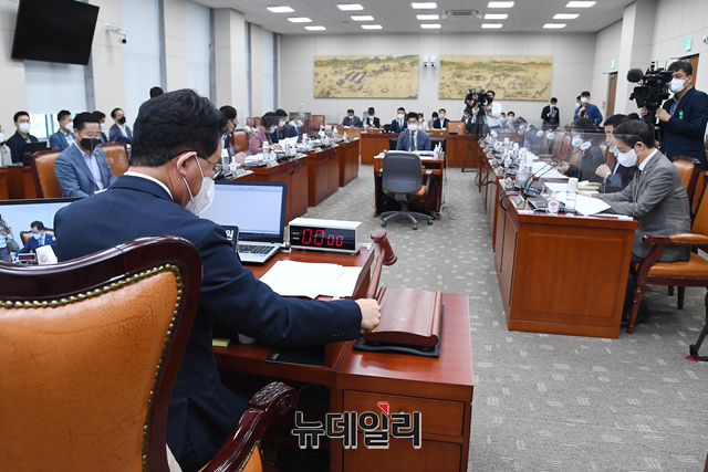 유기홍 교육위원장이 21일 국회에서 열린 교육위원회 전체회의에서 의사진행 발언을 하고 있다. (공동취재사진)