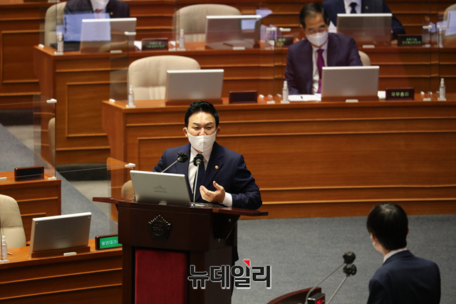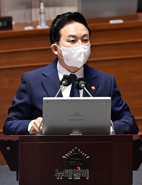원희룡 국토부 장관이 21일 국회에서 본회의장에서 열린 경제에 관한 대정부질문에서 의원들의 질문에 답변하고 있다. (공동취재사진)