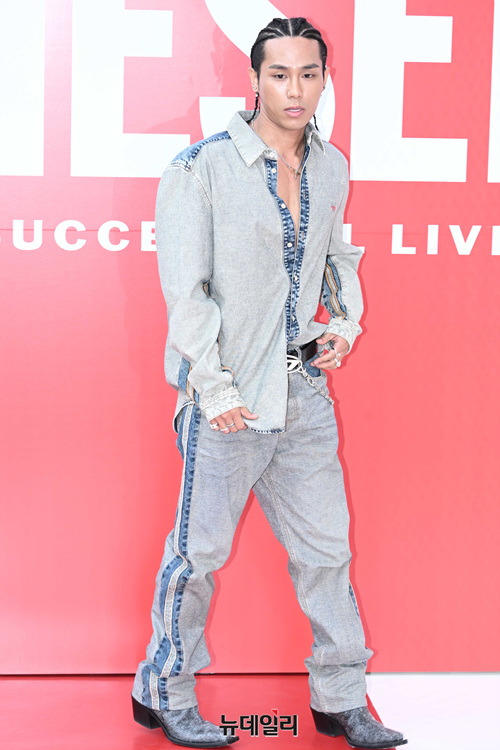 가수 식케이가 21일 오후 서울 용산구 디젤 한남점 스토어에서 열린 오픈 기념 행사에서 포즈를 취하고 있다.