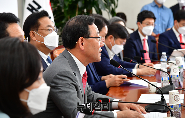 주호영 국민의힘 원내대표가 22일 오전 국회에서 열린 비상대책위원회의에서 모두발언을 하고 있다.