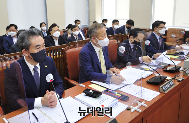 이상민 행정안전부 장관이 22일 오전 국회에서 열린 행정안전위원회 전체회의에서 의원들의 질의에 답하고 있다. (공동취재사진)