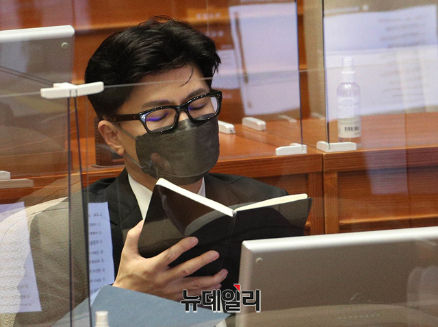 한동훈 법무부 장관이 22일 오후 국회 본회의장에서 열린 교육·사회·문화 대정부질문에 자리해 있다. (공동취재사진)