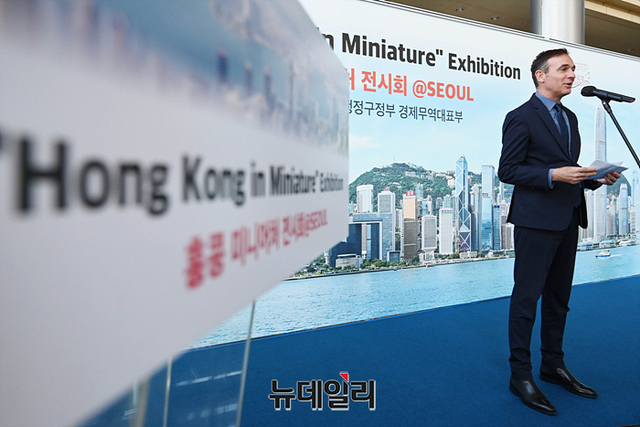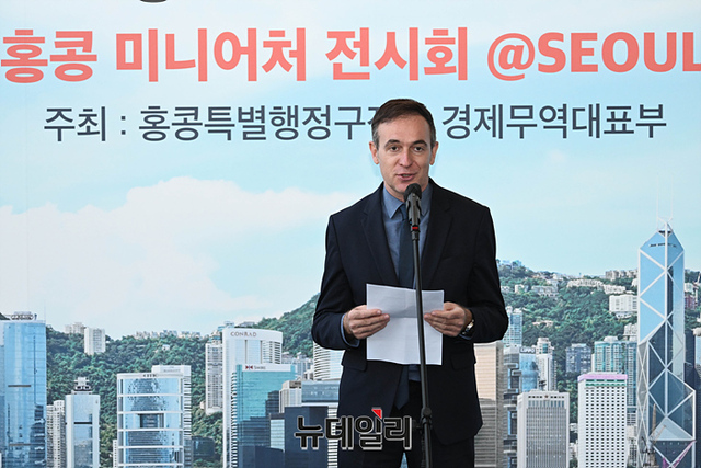 니콜라 마세 캐세이퍼시픽 한국지사장이 24일 오후 서울 강남구 코엑스 로비 D홀에서 열린 '홍콩 미니어처 전시회' 개막식에서 축사를 하고 있다.이번 전시는 홍콩의 △일상 △전통 △해상 경관 △도시 풍경까지 총 4가지 주제로 홍콩 미니어처 작가들이 제작한 40여 작품을 대한민국에서 처음으로 선보인다.행사에는 포토존, AR 작품 감상, 홍콩 영화 기획전, VIP 초청 갈라 디너, 홍콩 일반석 왕복 항공권 및 스타벅스 기프티콘 경품 추첨 등이 마련돼 있다. 입장료는 무료로 10월 3일까지 코엑스에서 개최된다.