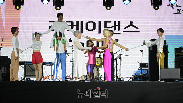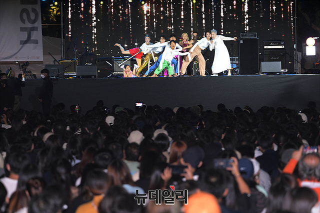 리케이댄스 현대무용단이 24일 오후 서울 종로구 대학로 일원에서 열린 '2022 웰컴 대학로 축제' 개막식에서 무대를 선보이고 있다.이번 축제는 개최 이래 최대 규모로 온·오프라인 등에서 총 150여편의 공연을 선보인다.개막식 '웰컴 로드쇼'를 시작으로 △한 공연장에서 다양한 장르의 작품을 선보이는 '웰컴 씨어터' △온라인에서 즐기는 '웰컴 K-스테이지' △거리 공연 '웰컴 프린지' △64편의 자유참가작을 만날 수 있는 '웰컴 플러스' △웰컴 폐막파티 등으로 구성됐다. 10월 30일까지 진행.