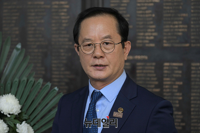 김흥광 NK지식인연대 대표가 25일 오후 서울 용산구 전쟁기념관에서 열린 '제19회 북한자유주간, 자유의 영혼들을 위한 헌화' 행사에서 인사말을 하고 있다.