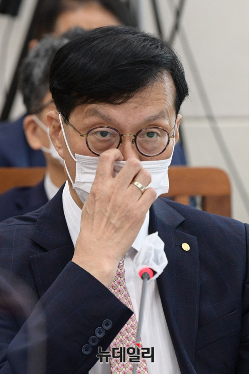 이창용 한국은행총재가 26일 오전 국회에서 열린 기획재정위원회 전체회의에 출석해 의원 질의에 답변하고 있다. (공동취재사진)