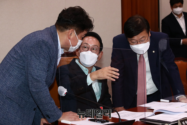 [포토] 대화 나누는 김도읍·기동민·정점식
