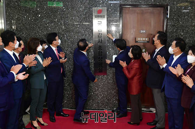 [포토] 국민의힘 '국정감사 종합상황실 현판식'