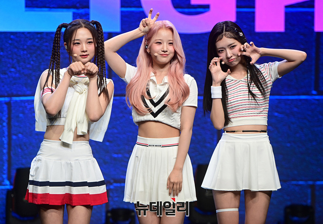 신인 걸그룹 '라임라잇(LIMELIGHT)'이 27일 오후 서울 강남구 일지아트홀에서 열린 프리 데뷔 EP앨범 쇼케이스에서 포토타임을 갖고 있다.라임라잇은 걸스플래닛999로 얼굴을 알린 이토 미유와 수혜, 퍼포먼스로 주목받고 있는 가은으로 구성된 확장형 걸그룹이다. 3인조로 시작해 활동을 하며 멤버가 추가된다. '세상의 주목을 받다' 뜻을 담은 팀명이다.'STARLIGHT' 'EYE TO EYE'를 더블 타이틀곡으로 확정하고, 뮤직비디오를 포함해 스페셜 클립을 순차적으로 공개하며 베일을 벗고 대중에게 다가갈 예정이다.