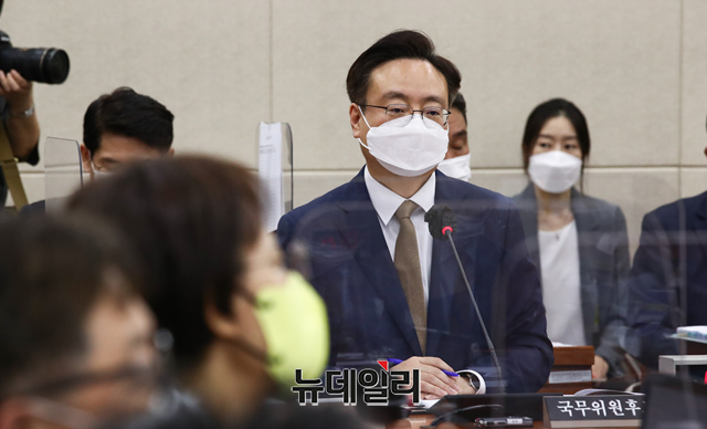 조규홍 보건복지부 장관 후보자가 27일 오후 국회에서 열린 보건복지위원회의 인사청문회에서 의원들의 질문에 답하고 있다. (공동취재사진)