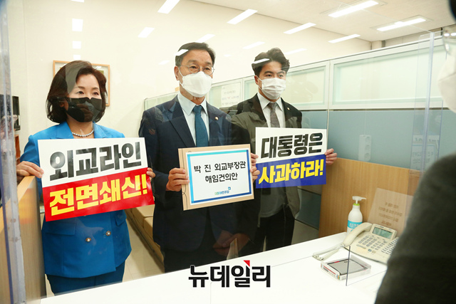 [포토] 박진 외교부 장관 해임안 제출하는 민주당