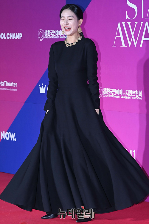 배우 김소은이 29일 오후 경기 고양시 일산 킨텍스에서 열린 '2022 에이판 스타 어워즈(APAN Star Awards)' 레드카펫에서 포즈를 취하고 있다.