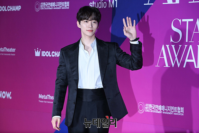 배우 이준호가 29일 오후 경기 고양시 일산 킨텍스에서 열린 '2022 에이판 스타 어워즈(APAN Star Awards)' 레드카펫에서 포즈를 취하고 있다.