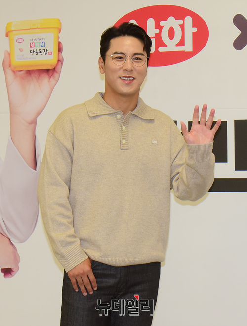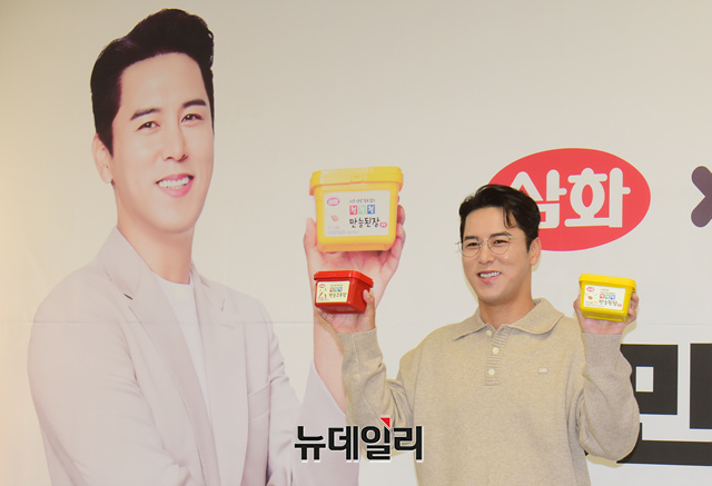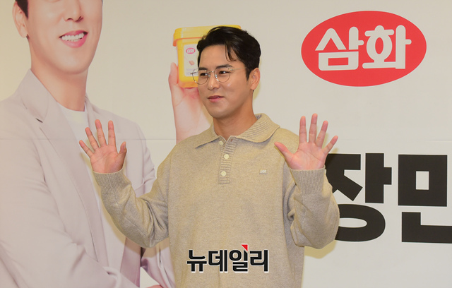 트로트 가수 장민호가 2일 오후 서울 홈플러스 강서점에서 열린 '삼화X홈플러스' 리뉴얼 오픈 기념 팬사인회 행사에 참석해 포즈를 취하고 있다.