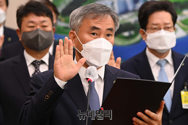 [포토] 증인 선서하는 이정관 한국토지주택공사 사장 직무대행