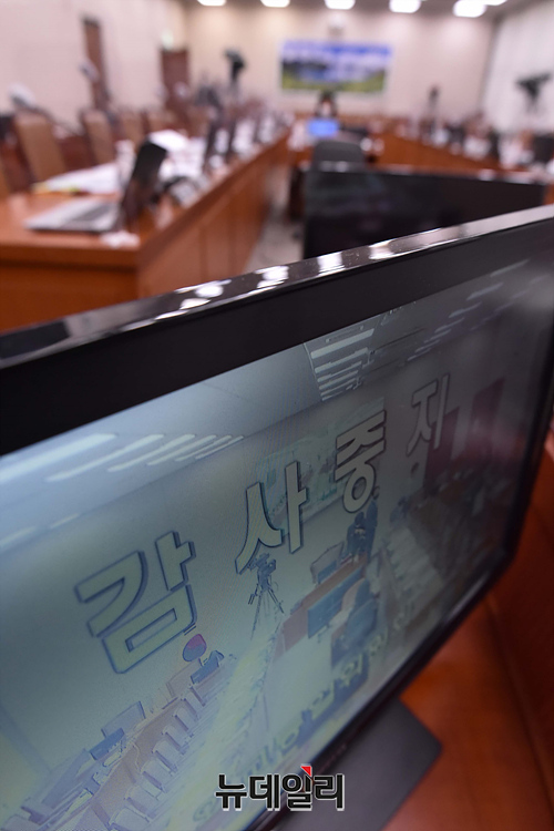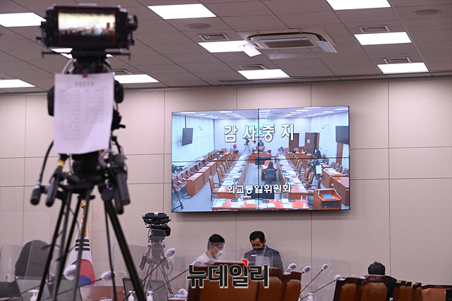 국회 외교통일위원회 국정감사가 4일 오전 국회에서 열린 가운데 박진 외교부 장관의 참석을 두고 여야간 대립으로 감사가 잠시 중단되고 있다.